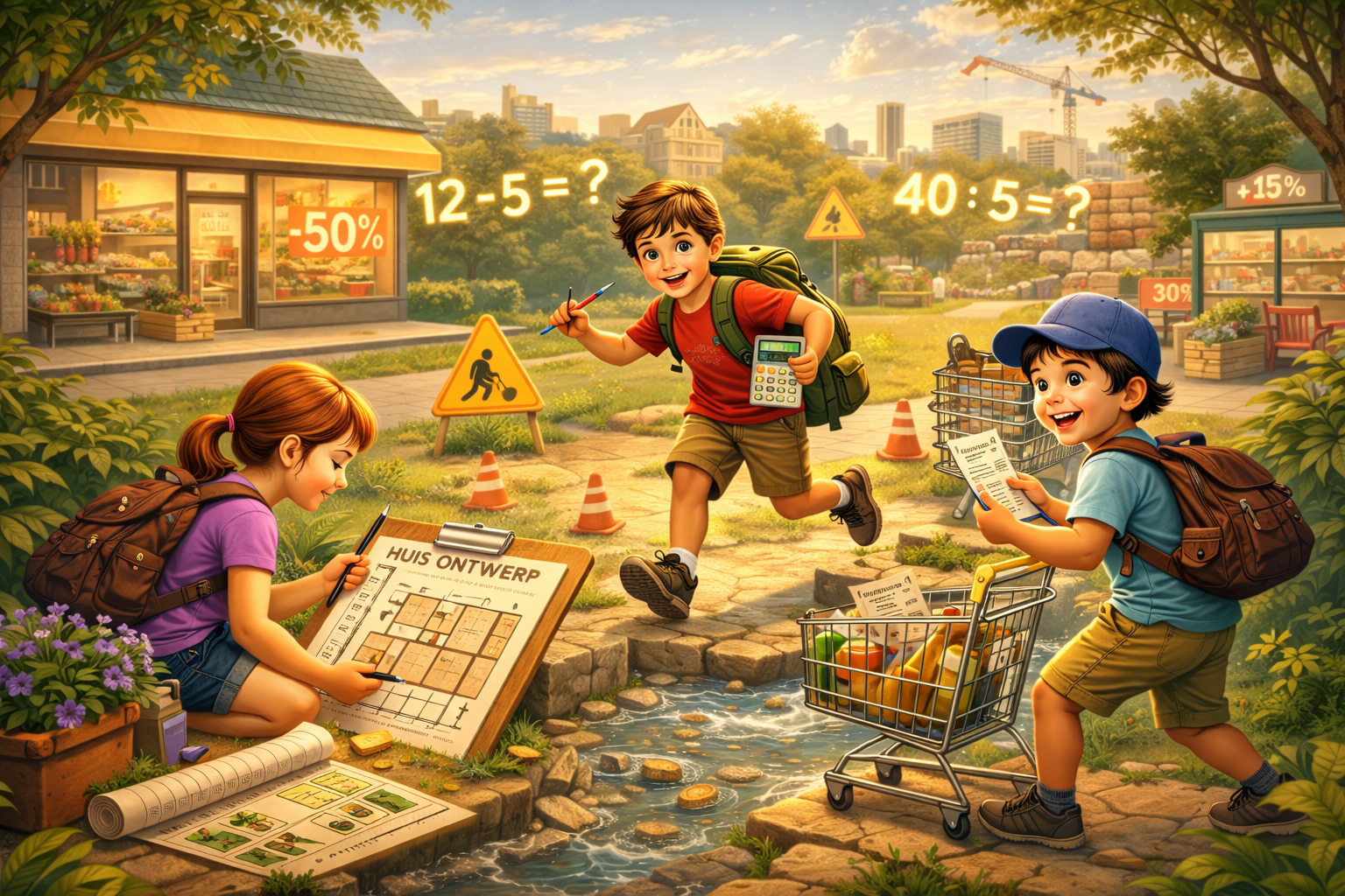 Vanaf groep 5 verandert er iets. Rekenen wordt abstracter, opdrachten worden groter en kinderen moeten steeds vaker zelf nadenken, plannen en toepassen. Juist daar maken onze rekenavonturen het verschil. Door te werken met praktische en betekenisvolle situaties — zoals een winkel ontwerpen of een wijk indelen — helpen we kinderen om hun basisvaardigheden écht te gebruiken en te begrijpen.